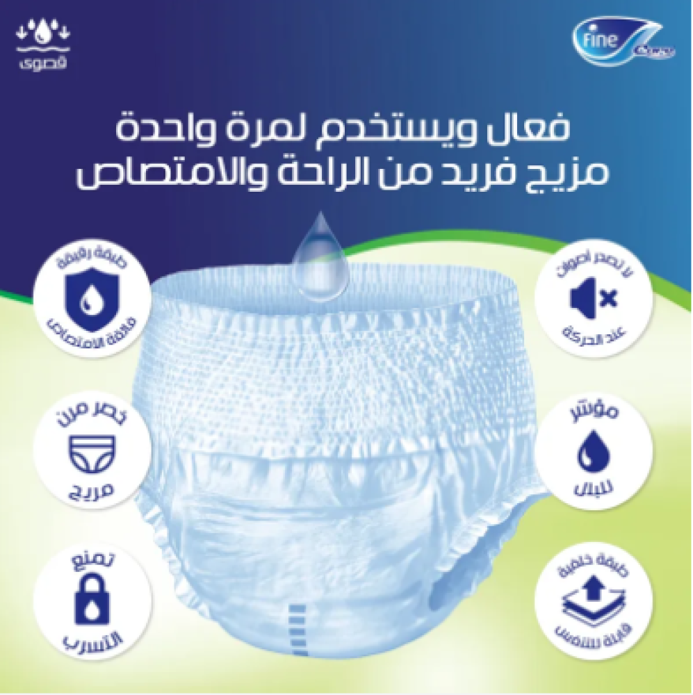 فاين كير حفائض لكبار السن كيلوت مقاس كبير خصر 100 - 140 سم 14 قطعة