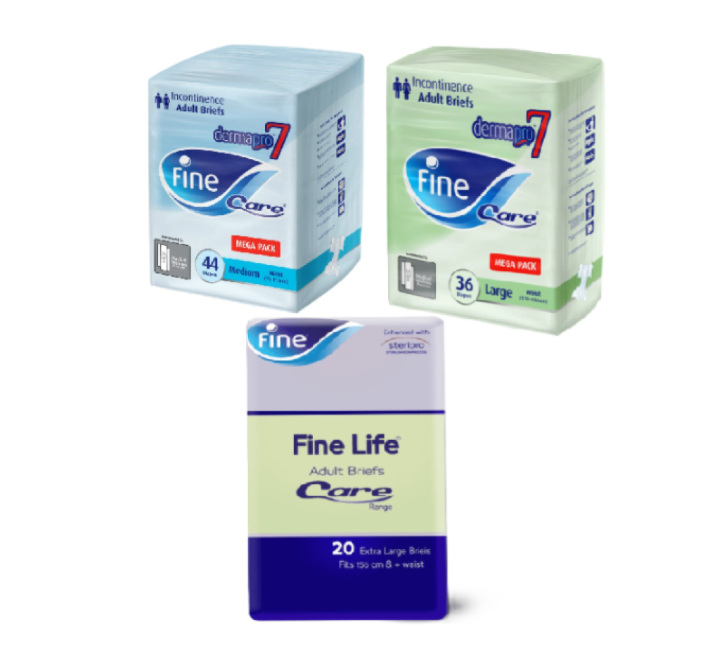حفاضات فاين كير للبالغين توفر امتصاصًا مثاليًا وراحة طوال اليوم والليل، حيث تم تصميمها خصيصًا لتناسب محيط الجسم.
