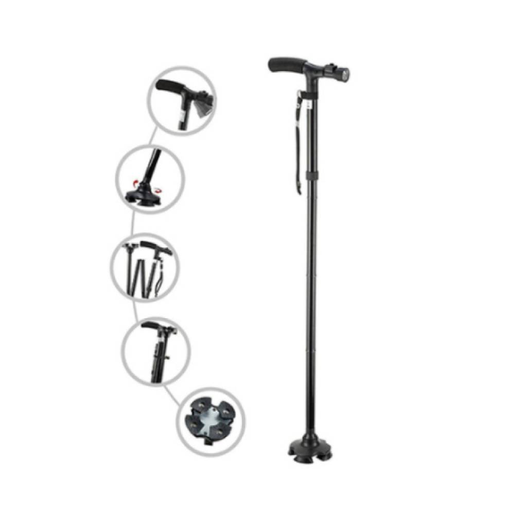 - تساعد إضاءة الكشاف الموجودة في أعلى العكاز على كشف الطريق أمام المستخدم في المناطق المعتمة أو عند استخدام العكاز ليلًا لتفادي حوادث فقدان التوازن والسقوط والإصابات.